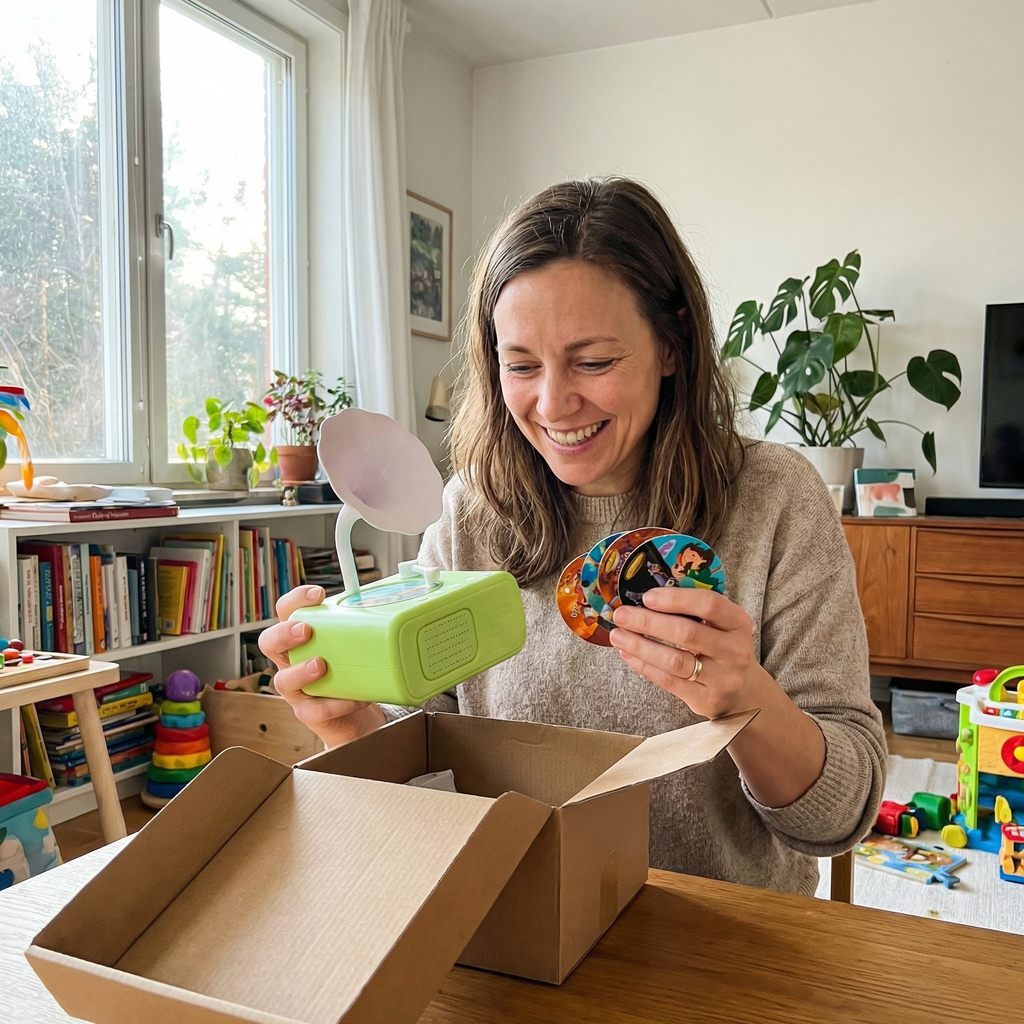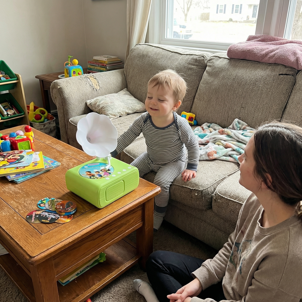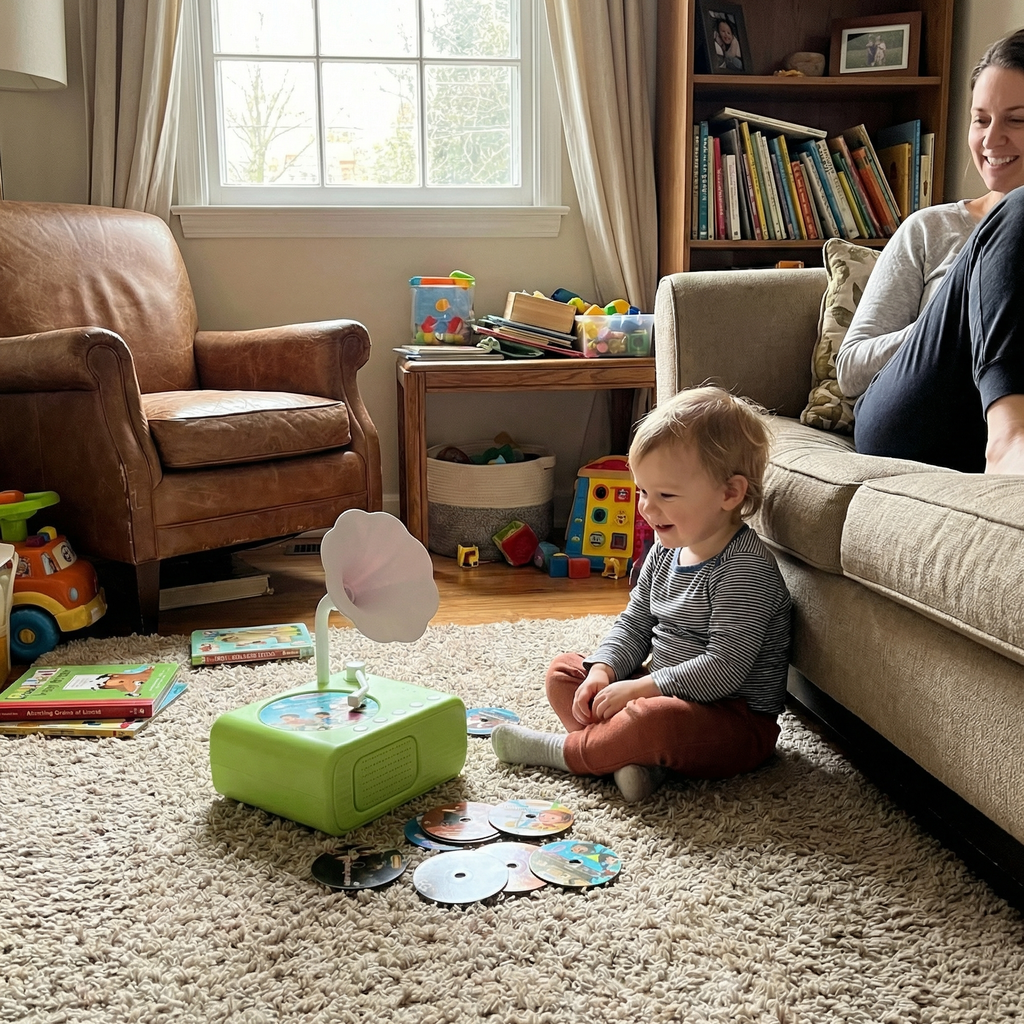 Prin redarea de povești, sunete și melodii, dispozitivul creează un mediu relaxant și stimulant, ajutând copilul să învețe, să se liniștească și să își dezvolte imaginația.