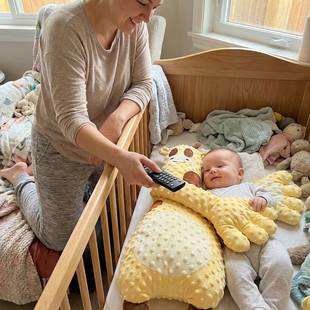 Pernă Calmanta pentru Somnul Bebelușilor PufiKids® este o pernă inteligentă concepută pentru a imita atingerea calmantă a părintelui. Sistemul cu mișcare blândă de tip „palme relaxante” oferă o senzație constantă de mângâiere, ajutând bebelușul să se liniștească rapid și să adoarmă mai ușor.
