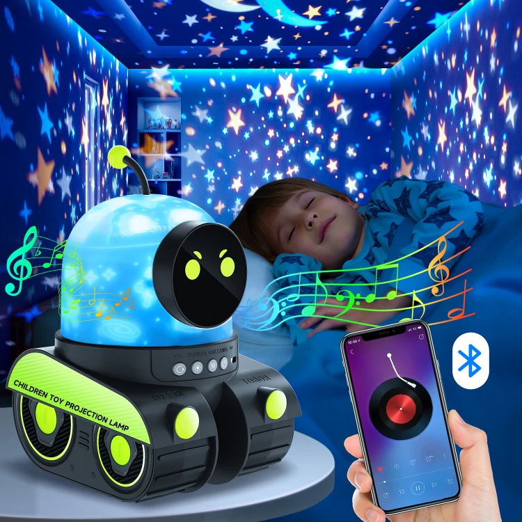 Transformă camera copilului într-un univers fascinant cu RoboPro, proiectorul inteligent care îmbină lumina, sunetul și imaginația într-o experiență relaxantă și educativă.